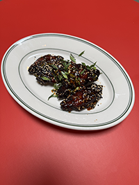 Chopped chicken / garlic cream cheese / scallion / togarashi / side of hot honey